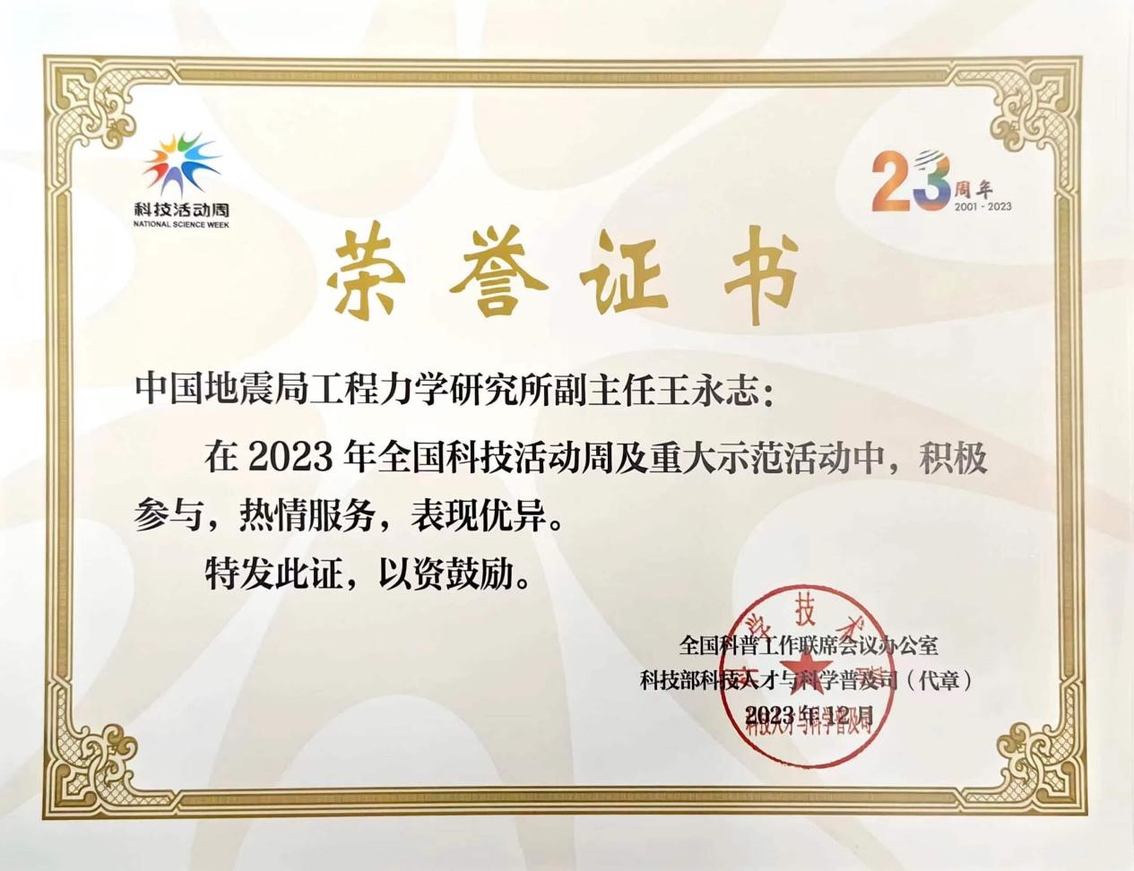 我所在2023年全國科技活動周工作中受表彰